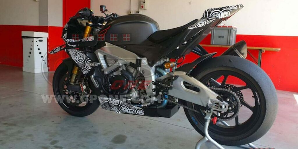 Mirando las fotos espía, hay algunas cosas que sacamos claramente. Para empezar, desde la “aerodinámica inspirada en MotoGP”. Parece que Aprilia está siguiendo de cerca el diseño de la motogp RS-GP 20 MotoGP. Desde el parabrisas hasta las alas, el diseño se parece mucho al proyecto MotoGP de Aprilia.