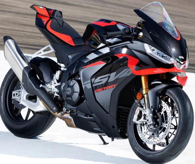 La Aprilia RSV4 Factory 2025 exhibe una presencia visual imponente, enmarcada por líneas afiladas y una…