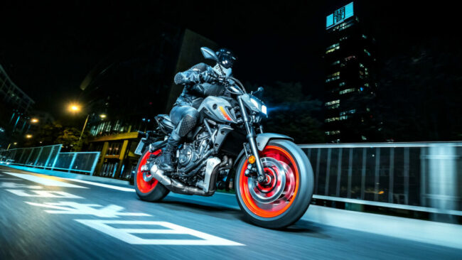 Para 2021, la MT-07 de última generación luce una carrocería nueva y distintiva con dos tomas de aire de tipo aleta y un nuevo faro LED compacto que proyecta un frontal futurista en forma de Y