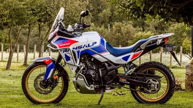 La Transalp SP se presenta con el diseño típico de la marca, con una decoración especial en blanco, azul y rojo…
