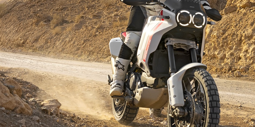 DesertX: Es la más cómoda para ir de pie (off-road), gracias a un manillar ancho y bien posicionado, estriberas off-road y un asiento estrecho en la zona de las rodillas. La altura del asiento (875 mm) puede ser un desafío para pilotos más bajos.