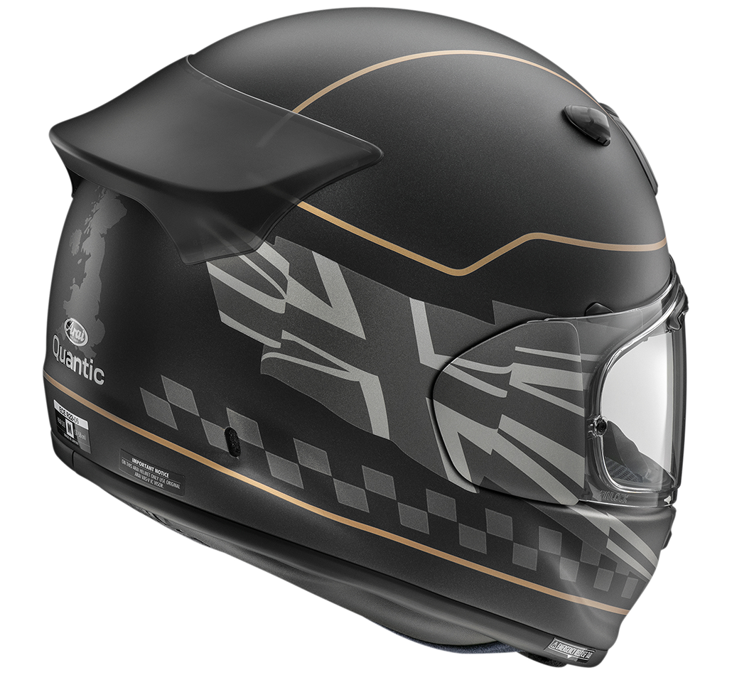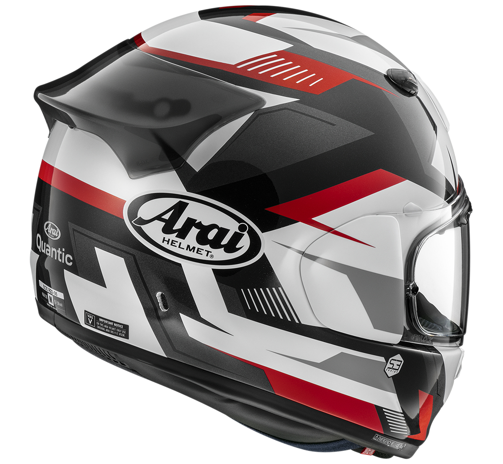 El Arai Quantic mantiene la filosofía de seguridad innegociable de la marca japonesa, centrándose en el concepto de «Glancing Off» (desvío de energía).
