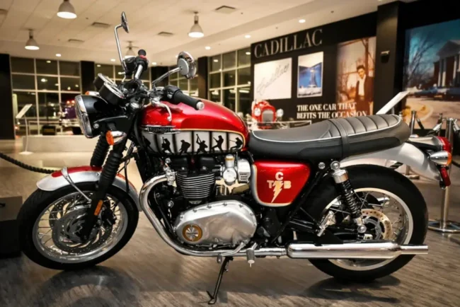 Esta moto es una T120, que presenta un diseño personalizado del artista J. Daar y está inspirada en las Triumph originales de…
