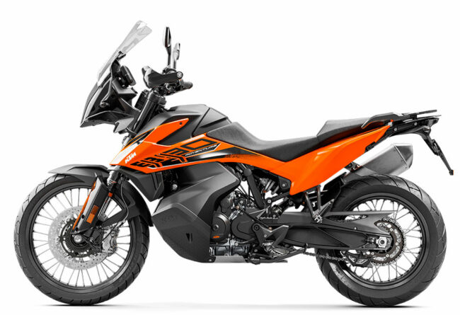 KTM 890 Adventure 2021, es la edición «estándar» del trío, con cambios en la suspensión y la geometría