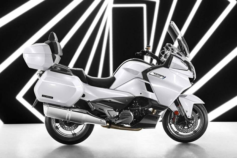 Esta es la nueva moto de turismo 1250 TR-G, impulsada por el motor V-twin de 1279 cc, de procedencia KTM. CFMoto y KTM tienen una asociación de ingeniería y producción, por lo que no es una sorpresa.