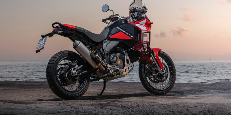 Ducati también menciona la adición de maletas laterales de aluminio y un subchasis reforzado diseñado para uso todoterreno, pero no parece que esos elementos estén incluidos en la lista de equipamiento estándar para las motos. Por alguna razón, parecen ser accesorios de costo adicional. Pero las nuevas características del mapa hicieron en la última DesertX, con navegación paso a paso a la que se accede a través de la aplicación Ducati Link, que luego se puede mostrar directamente en el tablero TFT de 5 pulgadas. Eso es una mejora con respecto al modelo base.