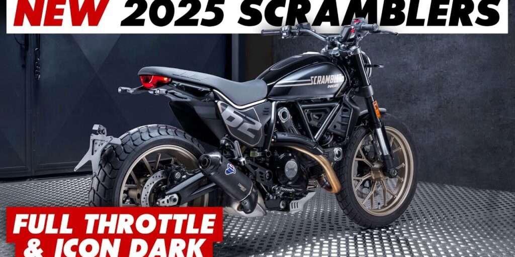 Full Throttle 2025: Inspirada en las carreras de flat-track, presenta una decoración más agresiva en negro y bronce, guardabarros delantero corto, colín sin guardabarros trasero y placas laterales con el número «62» (en homenaje al debut de la Scrambler en 1962).