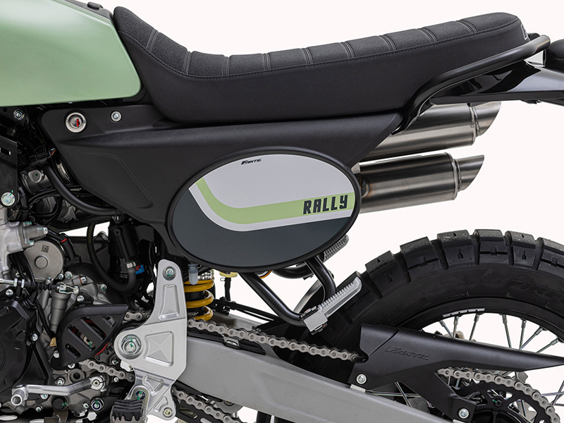 Su configuración off-road, caracterizada por suspensiones ajustables de 43 mm con mayor recorrido, guardabarros alto, basculante de aleación de aluminio con sección variable y sistema de bieletas progresivo, la convierte en la compañera perfecta para quienes buscan emociones fuertes en sus aventuras. La gran novedad de la versión Rally es la llanta delantera de 21″, que garantiza un rendimiento superior fuera del asfalto.