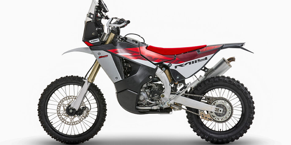 Esta máquina homologada Euro5 está diseñada para hacer que los rallyes sean asequibles y está construida, pero muy desarrollada a partir de su «plataforma» de suspensión Kayaba, chasis doble larguero de aluminio y derivado de Yamaha.