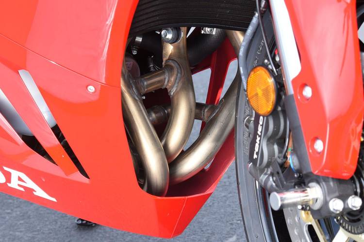 El escape 4-2-1 utiliza diámetros grandes para mejorar el flujo de gas a altas rpm; el espesor de la pared ha sido cuidadosamente estudiado para minimizar el aumento de peso. El catalizador también es físicamente más grande y una parte importante del proceso de homologación EURO5.