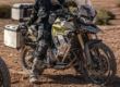 La horquilla delantera acabada en color negro cuenta con botellas de suspensión de dos piezas fabricadas en aluminio extruido y fundido, unidas a unas barras de suspensión de 43 mm en terminación oscura con un ligero matiz azulado. Los amortiguadores dobles de muelles con ajuste de precarga cuentan con depósitos separados para una amortiguación uniforme.