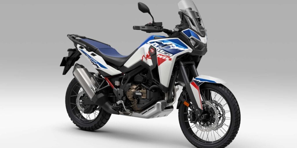 La CRF1100L África Twin 2024 estará disponible en dos opciones de pintura, todas ellas con llamativos gráficos de «montaña»: