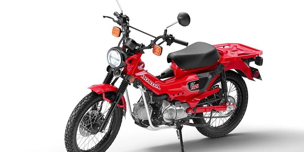 El Honda CT125 Hunter Cub es un curioso scooter trail con ruedas de radios de 17 pulgadas y escape por arriba al más puro estilo scrambler.