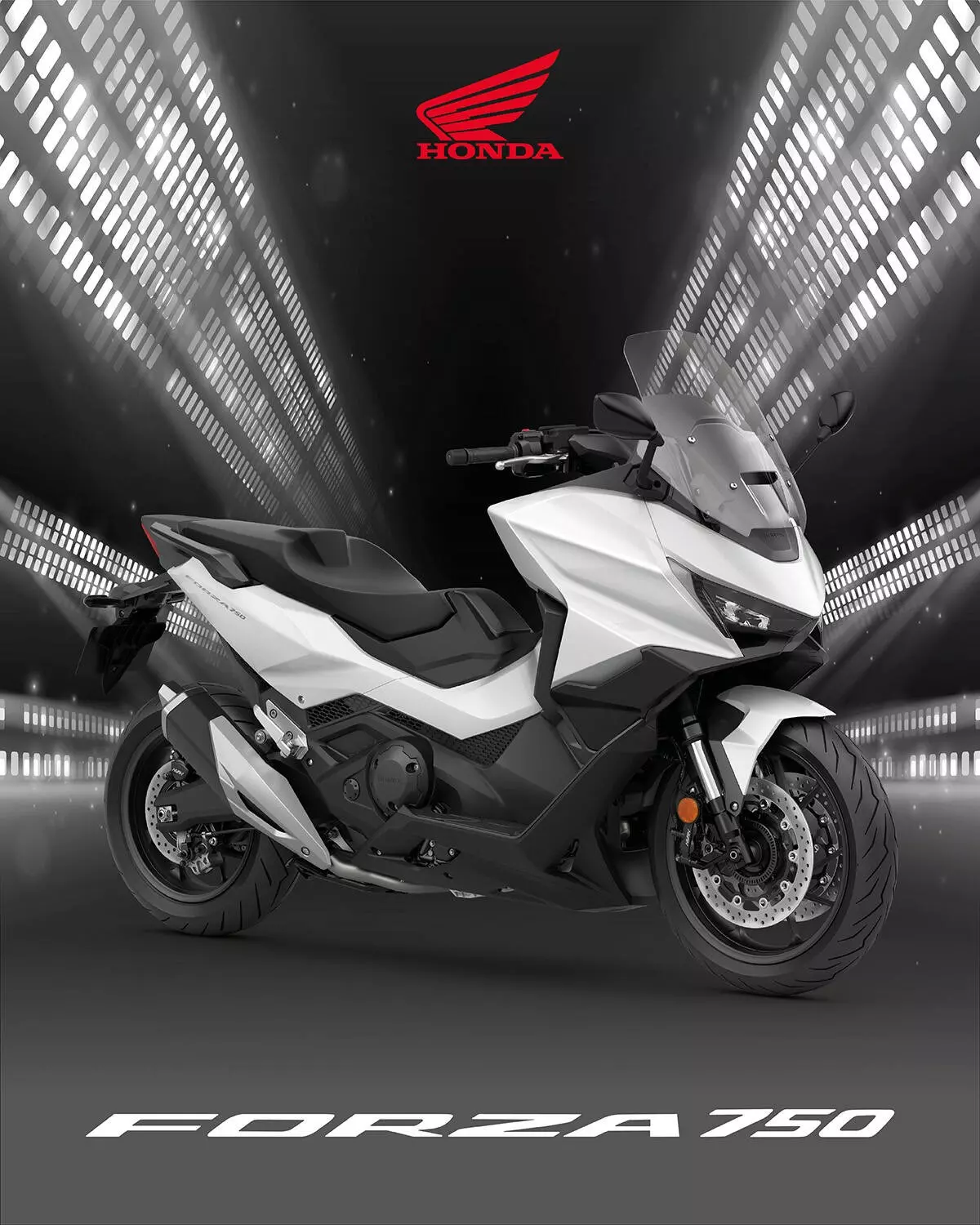 Forza 750: Frontal más anguloso y compacto, con un nuevo faro doble LED y luces diurnas (DRL) con intermitentes integrados. Uso de materiales sostenibles (Durabio y reciclados) en la carrocería. Estilo elegante, deportivo y minimalista GT.