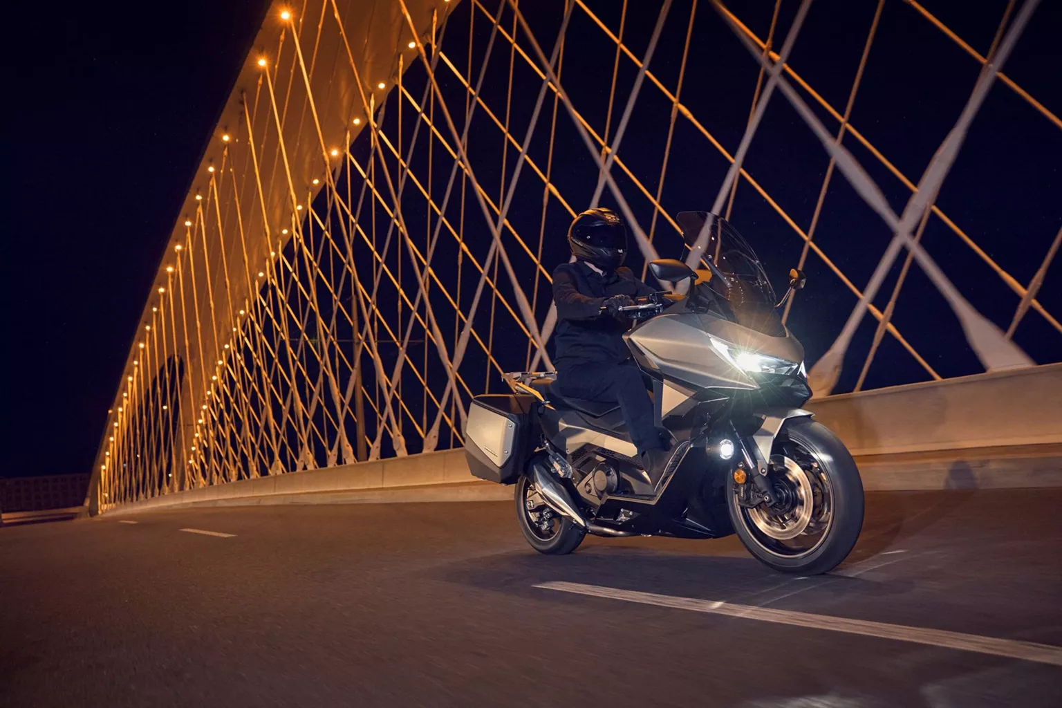 Forza 750: Ofrece una posición de uson más «scooter», con un asiento bajo (790 mm) y espacio amplio para las piernas, lo que facilita el pilotaje en ciudad y la accesibilidad para pilotos de diferentes estaturas. El parabrisas regulable electrónicamente (+120 mm) proporciona una excelente protección aerodinámica en carretera.