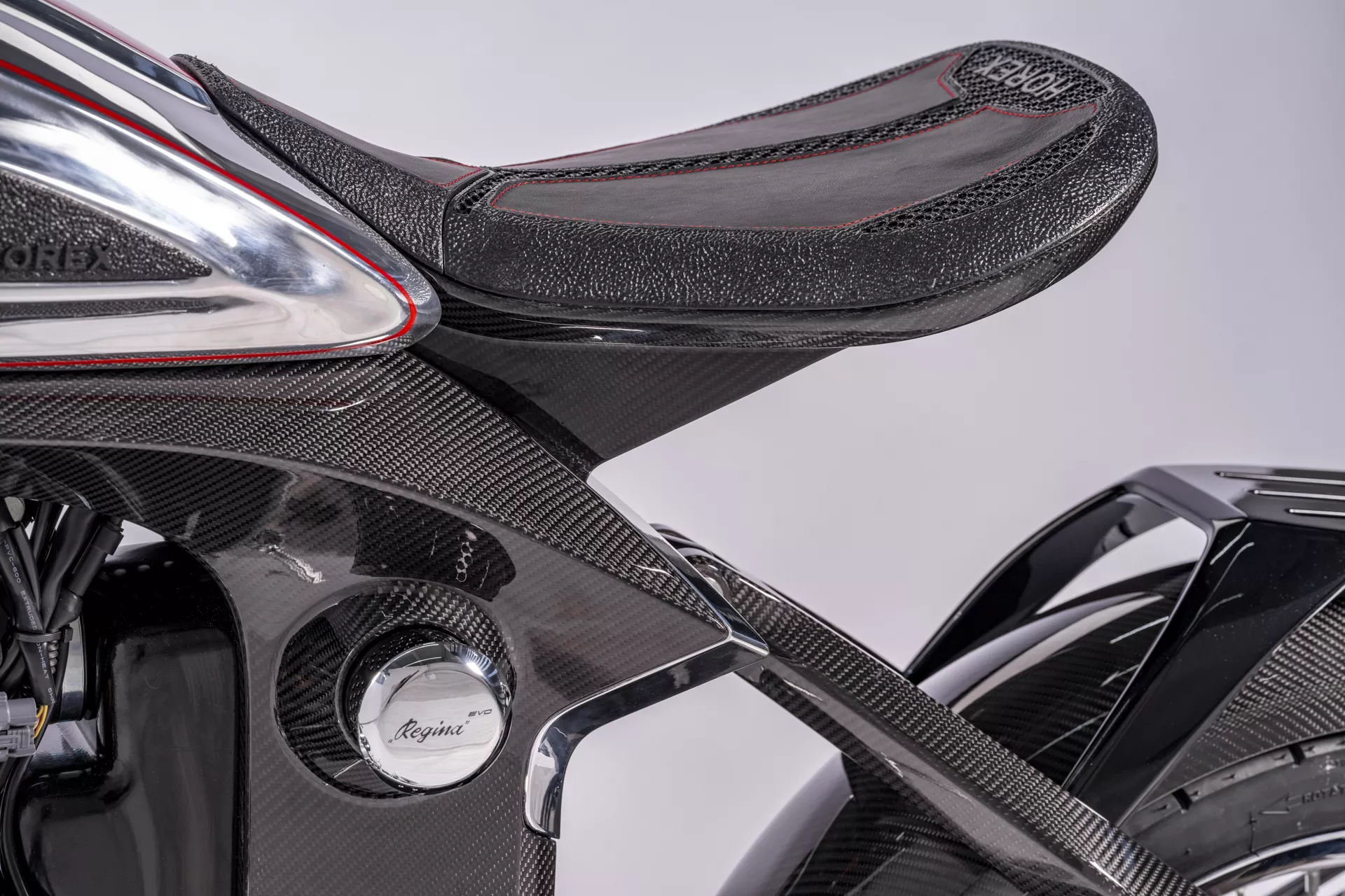 La Horex Regina Evo es una «monocasco» de fibra de carbono. Sí, habéis leído bien. Han cogido el concepto de la mítica Regina de los años 50 y le han aplicado tecnología de Fórmula 1. Es una silueta retro-futurista donde el asiento parece flotar en el aire. Es minimalista, elegante y, sobre todo, absurdamente ligera.