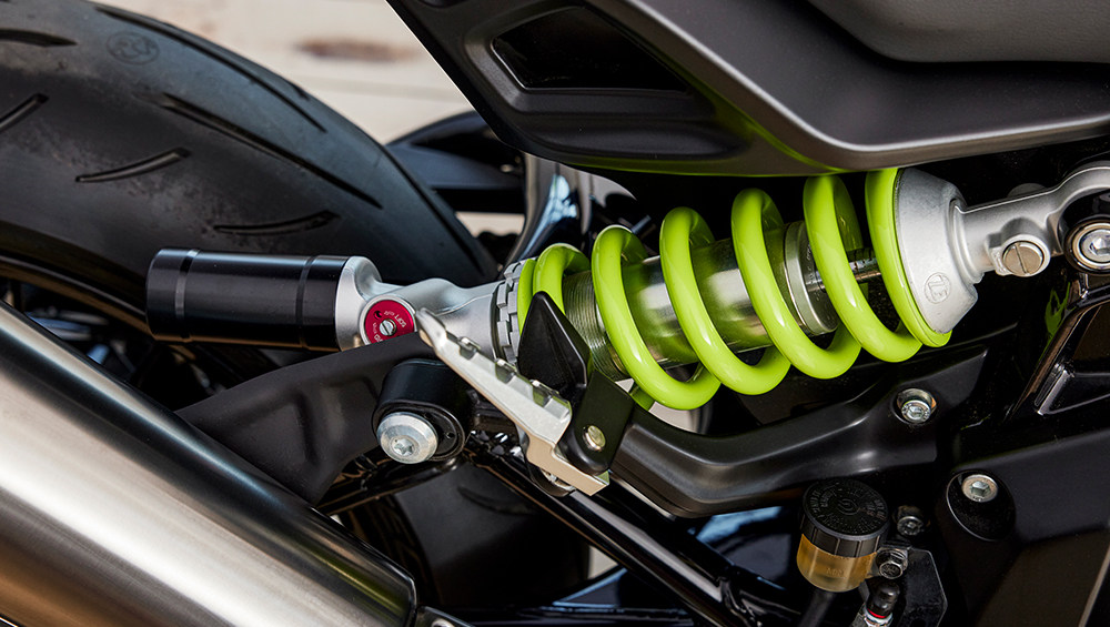 La FTR R Carbon se desmarca como una opción premium con componentes de fibra de carbono, asiento de alta calidad, horquilla delantera Öhlins dorada y totalmente ajustable y un amortiguador trasero con depósito paralelo. Las cubiertas del depósito con el icónico logo Script son exclusivas para la FTR R Carbon y están acabadas con las clásicas rayas Plata Cloud y Oro Championship.