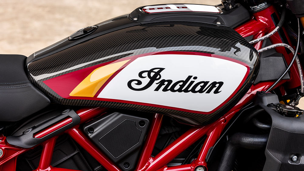 Estilo de primer nivel: la carrocería de fibra de carbono, incluidas las cubiertas del tanque, la góndola del faro, el guardabarros delantero y la cubierta del asiento, le dan a la FTR Championship Edition, un estilo llamativo.