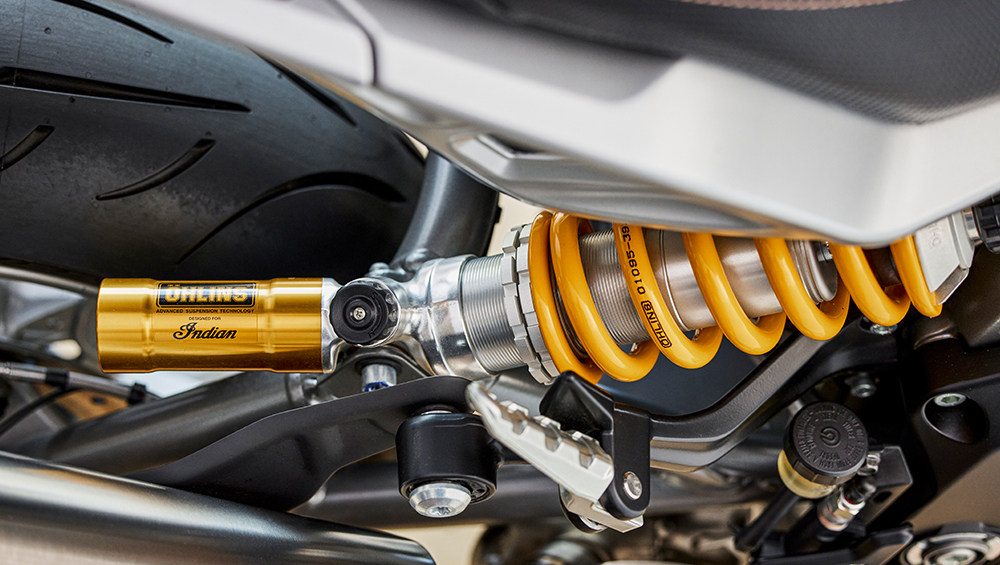 Suspensión Öhlins ajustable, las suspensiones delantera y trasera Öhlins totalmente ajustables te permiten ajustar tu pilotaje a la sensación exacta que deseas, manteniéndola plantada en las calles de la ciudad o carreteras secundarias, sin sacrificar el manejo telepáticamente ligero.