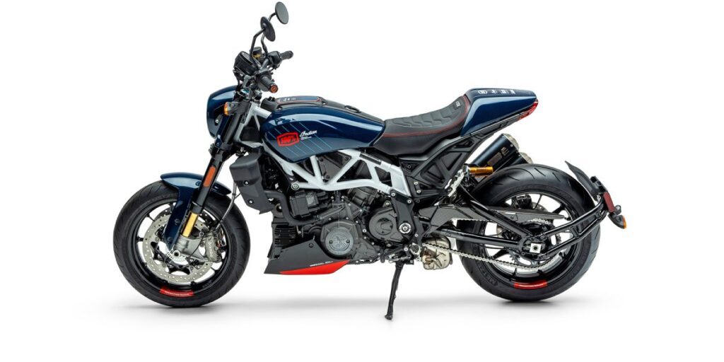 Resulta que la 100% no se refiere a cada pequeña pieza de carbono utilizada, sino a una empresa de equipos de motocross. De ahí la «x» en «Indian FTR x 100% R Carbon», supongo. El uso de la nomenclatura se remonta al estilo de pista plana, en lugar del hecho de que la antigua R Carbon de gama alta también recibió un tratamiento de carbono menos integral.