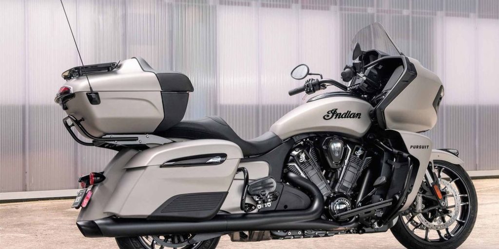 El otro aspecto destacado de la Pursuit orientada a los viajes es lo que Indian llama un «baúl de carga premium» que parece aceptar dos cascos integrales y presumiblemente mucho más. Agrega las alforjas de carga superior con bloqueo eléctrico y el soporte para pasajeros para beneficiarse de más capacidad de almacenamiento en el nuevo modelo. Otras características estándar en ambas Pursuit incluyen puños calefactables, un nuevo asiento Touring Comfort y plataformas para el piloto y el pasajero.