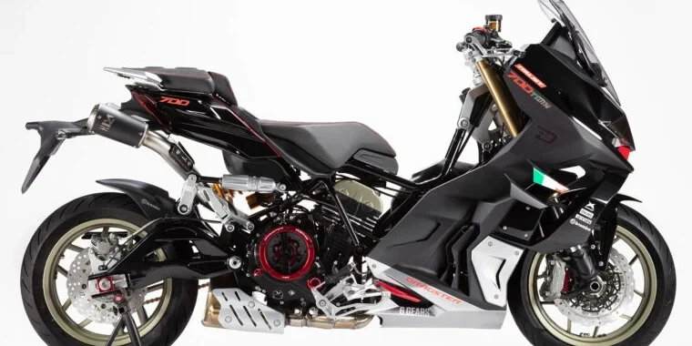 El Italjet Dragster 700 Twin Limited, ha sido diseñado en el Italjet Style Center de Castel Guelfo (Bolonia). A nivel del motor que emplea, un bicilíndrico paralelo proveniente de la Benelli TRK 702. El Italjet tiene las siguientes características: caja de cambios manual de 6 velocidades, tapa de embrague DBK transparente, transmisión secundaria por cadena, chasis y subchasis multitubular de acero al cromo-molibdeno, suspensión Marzocchi y Öhlins, escape Akrapovič con doble salida, pinzas Brembo radiales, semimanillares y llantas de 15 pulgadas, o sea un scooter con elementos de moto y seguro que rodar con este aparato será para hacerse diez años más joven, la marca declara un peso de 190 kg y una velocidad punta sobre los 190 km/h, una pasada de máquina.