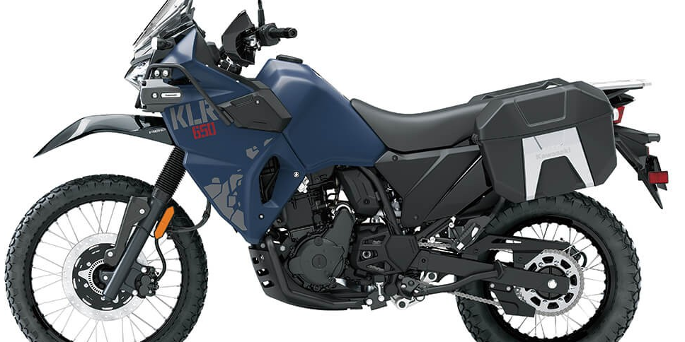 ADVENTURE: Equipada con alforjas, faros antiniebla, deslizadores de marco, almohadilla para el tanque y toma de CC, la KLR650 ADVENTURE ofrece una mayor capacidad de carga y comodidad.