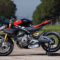 El sistema de frenos con doble disco de 290 mm con pinzas monobloque de anclaje radial de cuatro pistones en la parte delantera y un disco de 220 m con pinza de simple pistón detrás. Los neumáticos tienen medidas 120/70-17” delante y 160/60-17” detrás.
