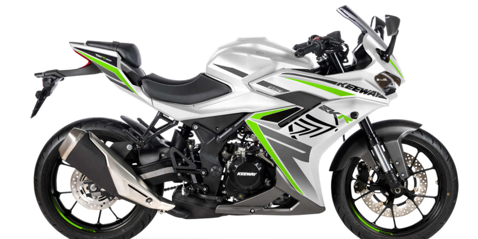 La Keeway RKR350, combina diseño, rendimiento y tecnología avanzada en una elegante deportiva. Diseñada con un ADN de carreras, la RKR350 está propulsada por un motor bicilíndrico en línea de 321 cc, que entrega 38,9 cv y 28 Nm de par para una buena aceleración.
