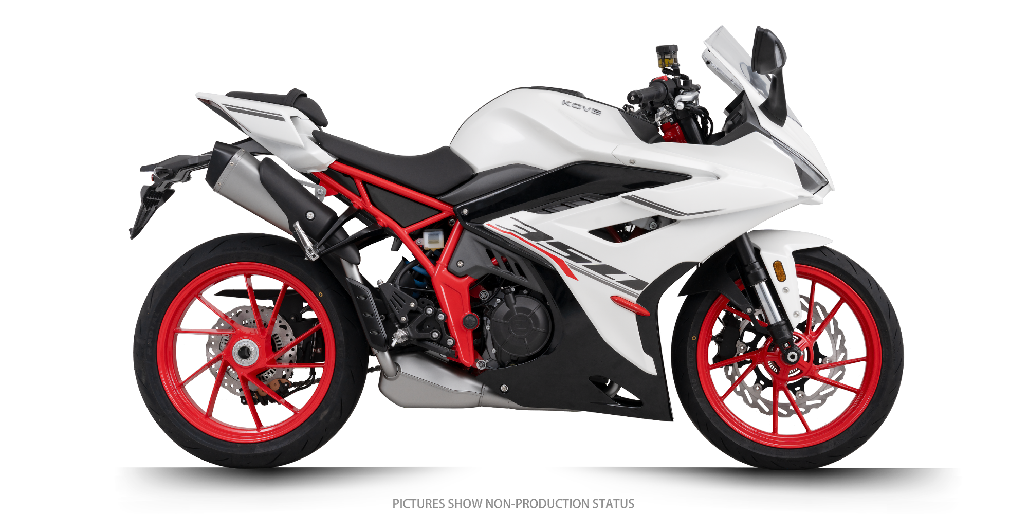 La recientemente presentada 350 RR también servirá de base para la nueva moto de competición SSP300 2025. Según Kove, han estado utilizando los datos recopilados en el WSBK durante los últimos dos años para desarrollar está 350 RR. Presenta, además de lo ya comentado, un diseño exterior completamente renovado donde se ha trabajado específicamente en aspectos clave como la aerodinámica, con lo que se ha conseguido una reducción del 10% de la resistencia al viento.