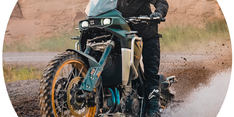 El sistema de frenos delanteros del modelo 800X Pro cuenta con discos dobles de 310 mm que frenarán a esta bestia en un abrir y cerrar de ojos. El sistema ABS se cambia rápida y fácilmente entre Encendido, solo ABS en la rueda delantera y completamente apagado, y si la moto se apaga momentáneamente con el interruptor de apagado, la última configuración de ABS utilizada aún está activa cuando la moto se vuelve a arrancar. El combo de llantas delantera de 21″ y trasera de 18″ es de radios y tubeless.
