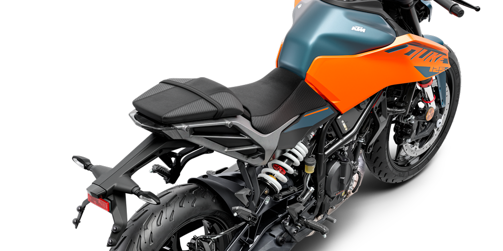 La KTM 125 DUKE sólo tiene 125 cc, ¡pero puedes estar seguro de que esta máquina es 125% DUKE! Construida con el mismo carácter NAKED que sus hermanas mayores, la KTM 125 DUKE 2024 presume de una actitud totalmente nueva y musculosa, con un nuevo chasis, suspensiones, luces LED, tecnología de asistencia al pilotaje y una agresividad que arrasa en las calles y en las curvas.