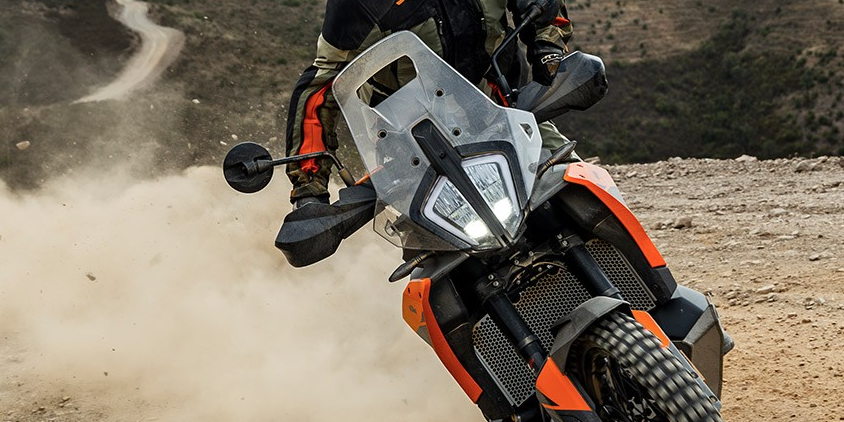 En campo: Es donde la 790 Adventure despliega todo su potencial. La combinación de su bajo peso, su chasis ágil, el centro de gravedad bajo y las suspensiones de largo recorrido la hacen extremadamente capaz en pistas de tierra, senderos forestales e incluso trialeras sencillas. El modo Offroad y la posibilidad de desconectar el ABS trasero brindan al piloto el control necesario para dominar el terreno.