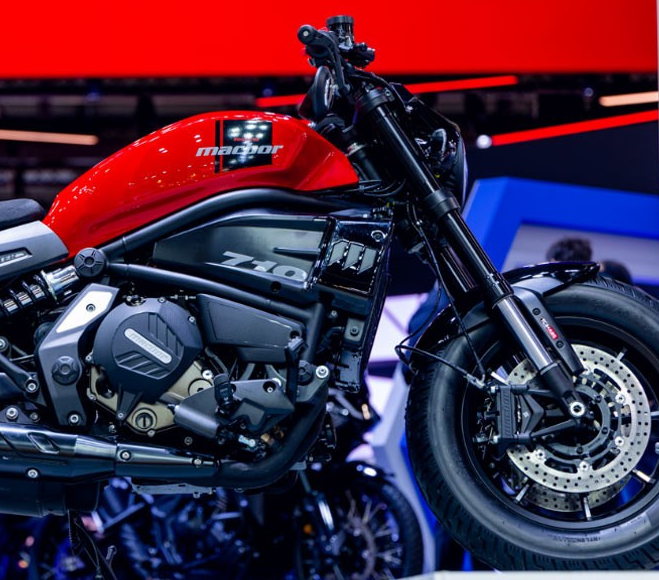 ¿Te tienes que pelear con ella? Rotundamente NO. A diferencia de las custom de la vieja escuela que giran como un transatlántico, la Macbor Rockster 710 2026 entra en curva con una agilidad sorprendente. El aplomo es su segundo apellido.