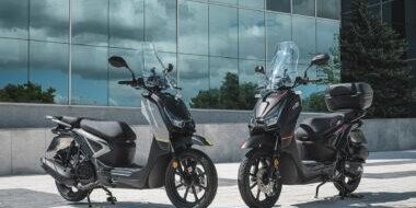 Su robusto bastidor tubular es visible desde la cubierta plana hasta la luz LED trasera. Este diseño no solo sirve para fines estéticos, sino que también está preparado para soportar el creciente uso en los servicios de entrega, facilitado por la gruesa sección del chasis. Se posiciona como un scooter ideal para instalar cajas en la parte trasera.