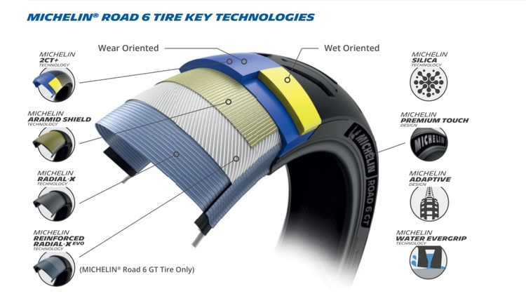Details15 % más de agarre que el neumático MICHELIN Road 5 GT, en condiciones húmedas gracias a los…