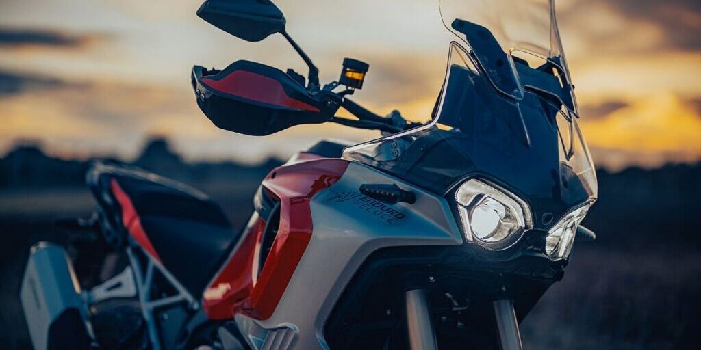 En ochenta años de historia de la marca nunca esta había construido una moto Trail, la nueva Enduro Veloce, es una moto potente, grande y pesada, de hecho, sus 250 kg, son muchos kilos.