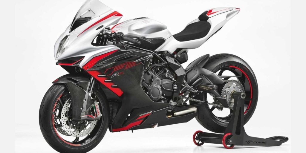 MV también ofrece un kit de carreras opcional para la F3 RR, que incluye una variedad de piezas de CNC (tapón de combustible y palancas), además de una funda para el asiento del pasajero para convertirla en una monoplaza. Más importante aún, el kit solo para pista incluye un escape Akrapovič que aumenta la potencia en 8 cv a 155 cv y reduce 8 kg del peso de la moto, reduciéndolo a 165 kg (seco).