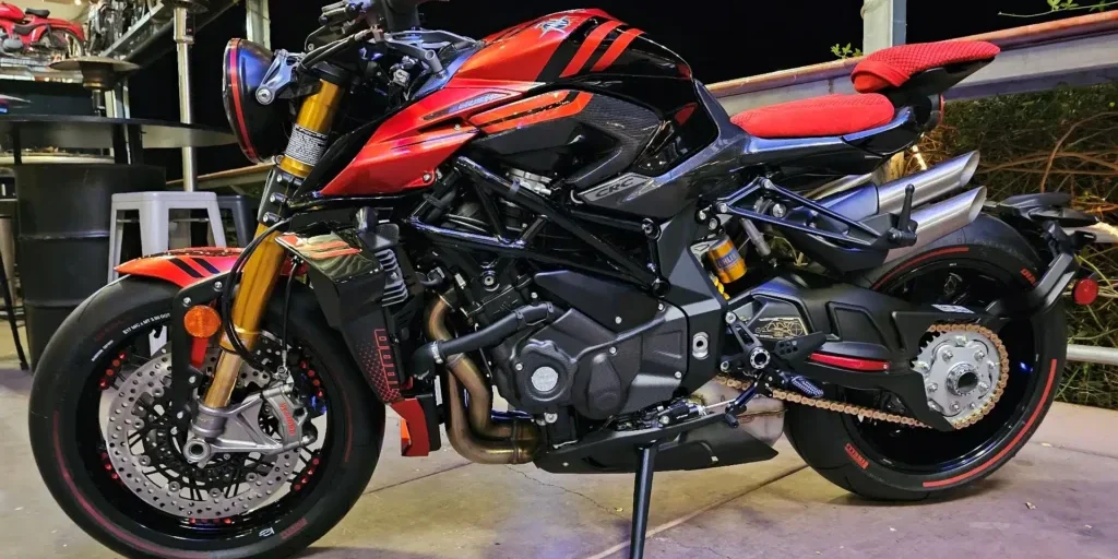 También hemos comentado que esta moto se basa en sus hermanas Brutale, como el motor, el chasis y la electrónica, pero la Edición Especial, monta elementos específicos de la versión, como: los grupos ópticos, marco trasero y asiento del pasajero, diseñados específicamente para esta montura.