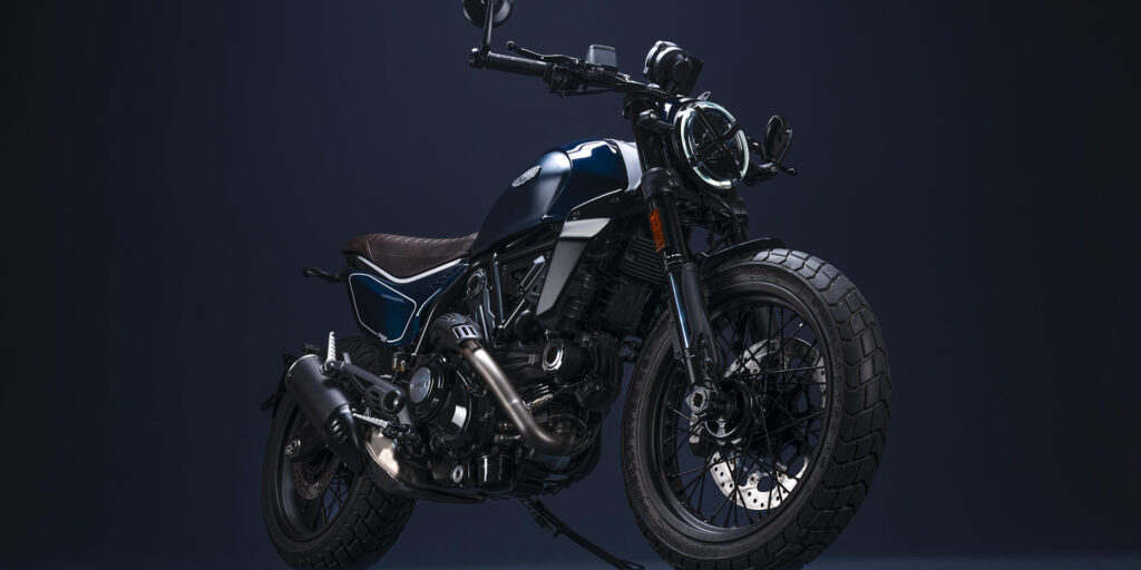 Esta usa un motor Monster V-twin de 803 cc, refrigerado por aire en un chasis liviano de estilo Scrambler, apariencia desnuda y llantas tipo Scrambler.