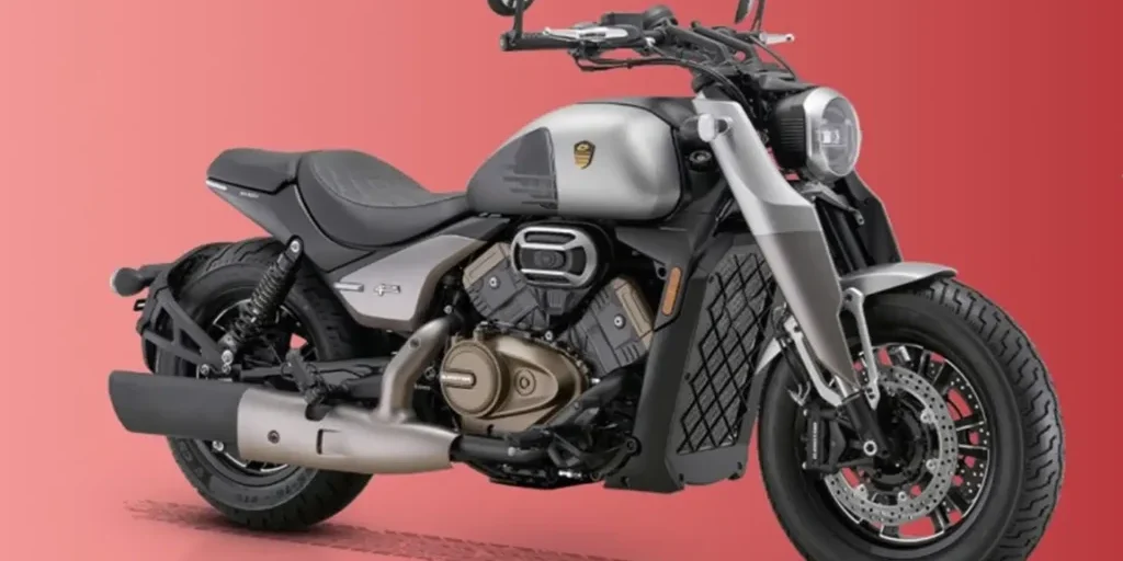 La SRV900V, con un motor V4 de QJMotors. La unidad DOHC de 899 cc produce 82 kW (111 cv) a 10000 rpm y 85 Nm de par a 8500 rpm, a través de una caja de seis velocidades y una transmisión final por correa. Con 221 kg, es más ligera de lo que se podría imaginar y, al igual que otros diseños recientes de cruceros chinos, oculta sus horquillas telescópicas USD detrás de carenados que dan la impresión de una viga delantera. QJMotor afirma que el motor cumple con las normas de emisiones Euro5+, lo que significa que debería ser adecuado para la venta en la mayoría de los mercados del mundo.