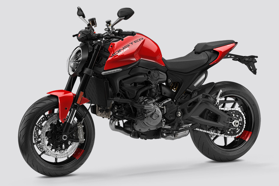 Ducati Monster SP: El asiento es ligeramente más alto (820 mm o 850 mm dependiendo del asiento) y la postura es más radicalmente deportiva. El manillar es más bajo y ancho que el de la Monster estándar. Es una moto más compacta, lo que beneficia a pilotos de menor estatura y mejora la agilidad en uso deportivo, pero es más exigente en viajes largos.