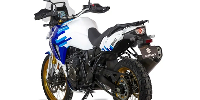 Suzuki presentó la V-Strom 800DE Djebel en el Motor Bike Expo 2024 en Verona, Italia. Con una cromática inconfundible de temática retro, Suzuki manifiesta que el motivo está destinado a representar el deseo de la moto de viajar sin límites. La moto presenta el clásico esquema de color blanco y azul de Suzuki, con los elementos dorados que consisten en la horquilla y las llantas que le dan un toque llamativo.