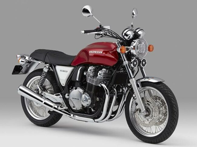 La Honda CB1100EX, es una moto moderna de cuatro cilindros refrigerada por aire con una nota de escape nítida. Detalles atractivos, como los delgados paneles laterales de aluminio pulido