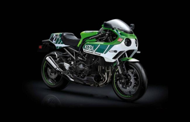La Kawasaki KR900, con una denominación de nombre emblemático para la marca. Con un look ochentero endurance …