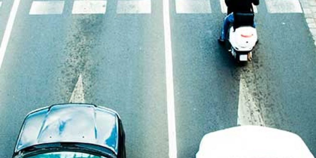 Además de no ir pegado al coche de delante, recuerda que tú vas en moto, no en coche: el carril es muy ancho y puedes elegir por qué parte circulas. Hazlo por la izquierda, o el lado que sea más cercano al centro de la calzada en ese momento: así, llegado el caso, tendrás una ruta de «escape» si no tienes espacio para frenar sin ir a impactar con el coche. Por eso también es importante que mires el tráfico por delante de ese coche, y estés pendiente de él un poco «de reojo». Si le miras fijamente, si te dejas «hipnotizar» por lo que llevas justo delante como hace quien conduce un coche, te pierdes lo que ocurre más adelante, que puede ayudarte a anticipar una acción, y además en caso de frenada súbita como le estarás mirando irás contra él, porque en esa situación uno se dirige hacia donde mira.