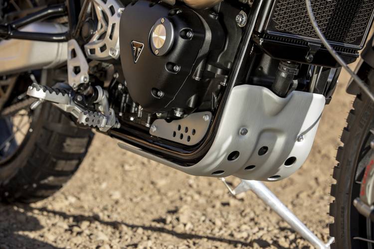Una mirada más cercana a la mula de pruebas revela la potencia bicilíndrica actualizada del 1200 cc de Triumph. Tiene un nuevo sistema de refrigeración, además de un escape reelaborado con diferentes latas finales. También puedes detectar dos sensores lamba en cada cabezal y una caja grande en el interior, por lo que Triumph está monitoreando claramente si el motor cumple con las normas actualizadas de Euro5. Sin embargo, no esperamos que la potencia de 90 caballos y 110 Nm de par, permanezca sin cambios.