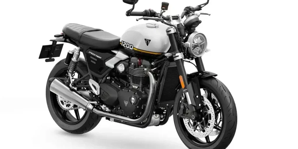 El modelo RS está aún mejor equipado, con una horquilla totalmente ajustable y un doble amortiguador trasero Öhlins con depósitos independientes, pinzas delanteras Brembo Stylema y neumáticos Metzeler Racetec RR K3 de altas prestaciones. El manillar más bajo y la nueva posición de las estriberas permiten a la Speed Twin 1200 RS ofrecer un pilotaje más deportivo.