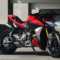 Tiene horquilla delantera de 41 mm, luego en la zona trasera un doble amortiguador con precarga regulable. El sistema de frenado delantero es Brembo y el modelo está equipado con neumáticos Pirelli Phantom Sports Comp.