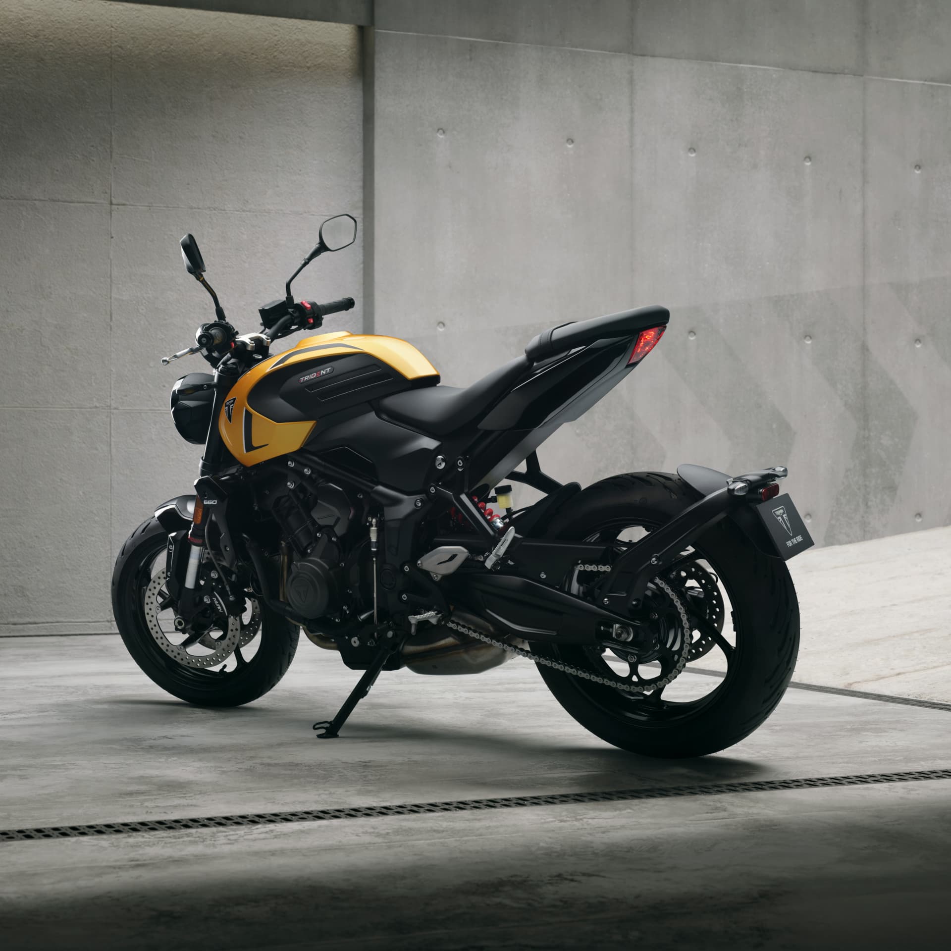 La guerra está declarada contra la Yamaha MT-07 (más macarra), la Honda CB650R (cuatro cilindros más finos) y la Kawasaki Z650 (la eterna equilibrada). Pero ninguna tiene el sonido del «Triple».